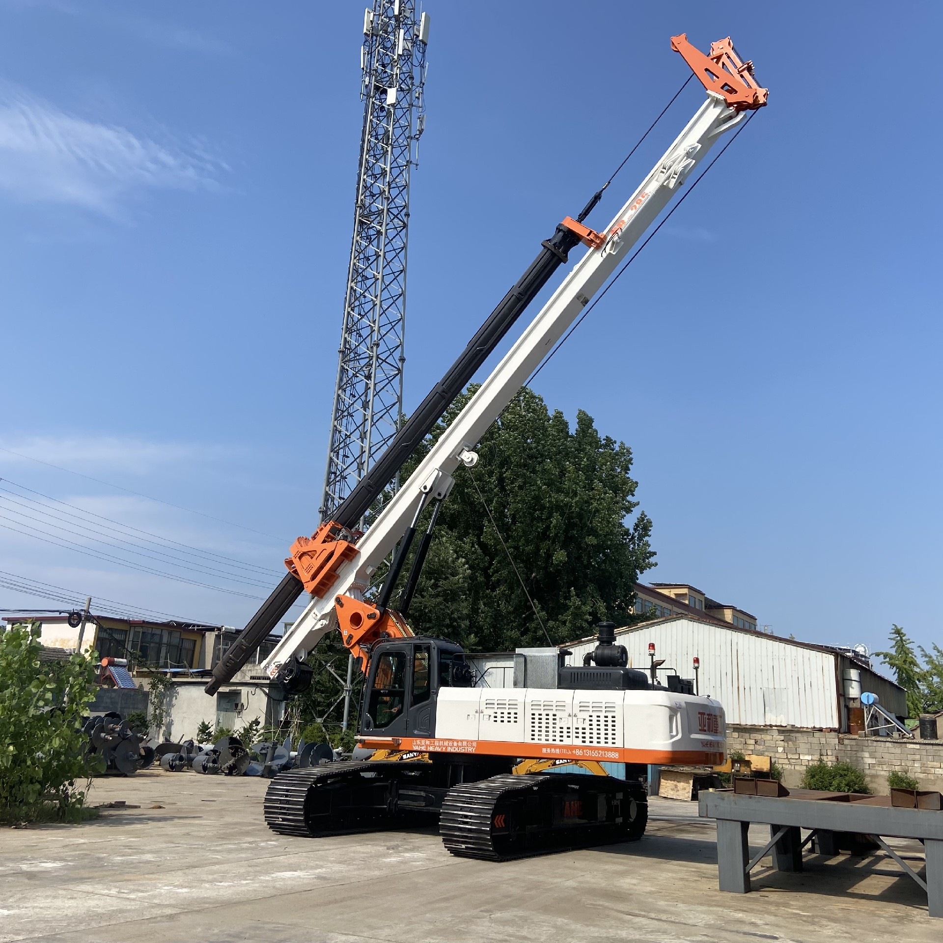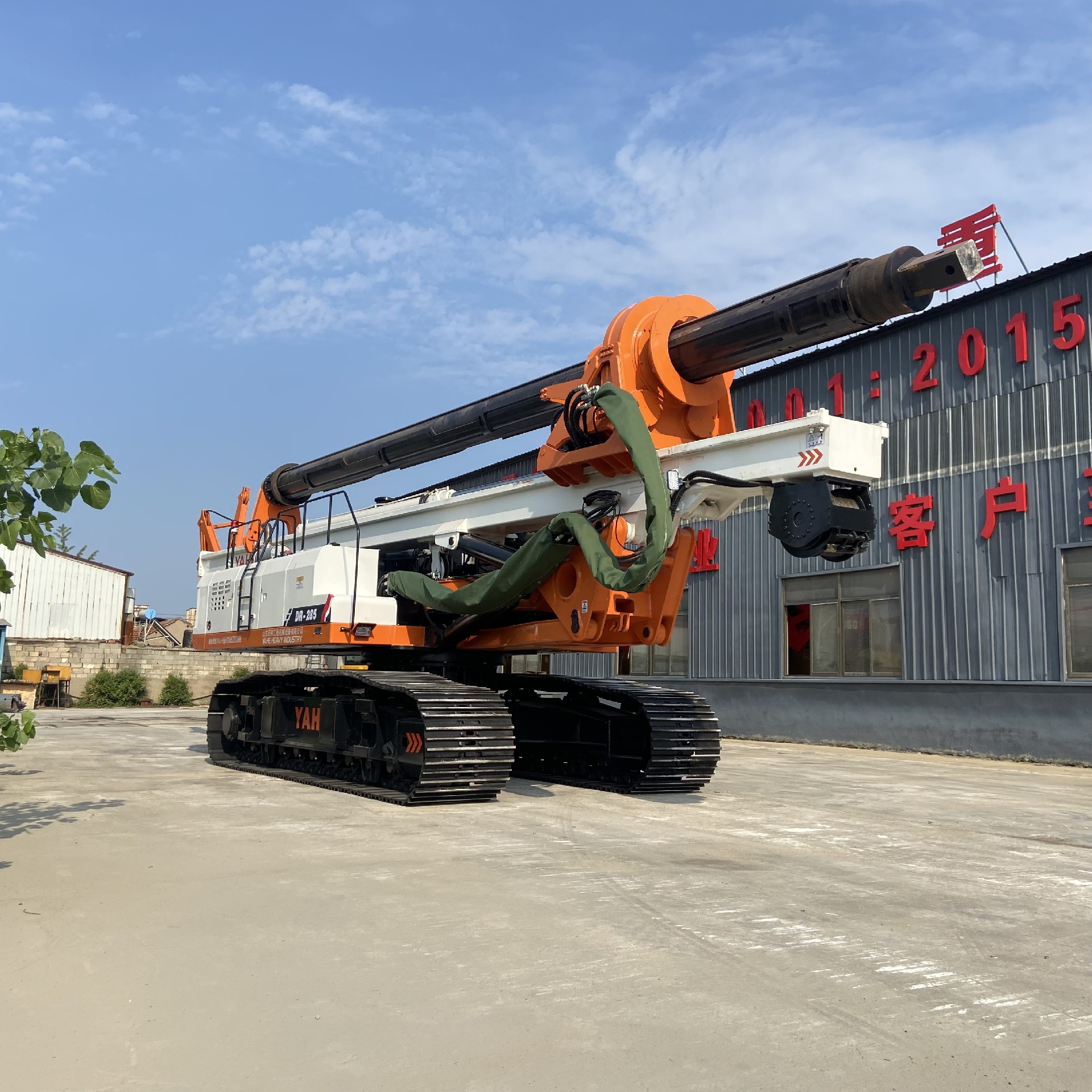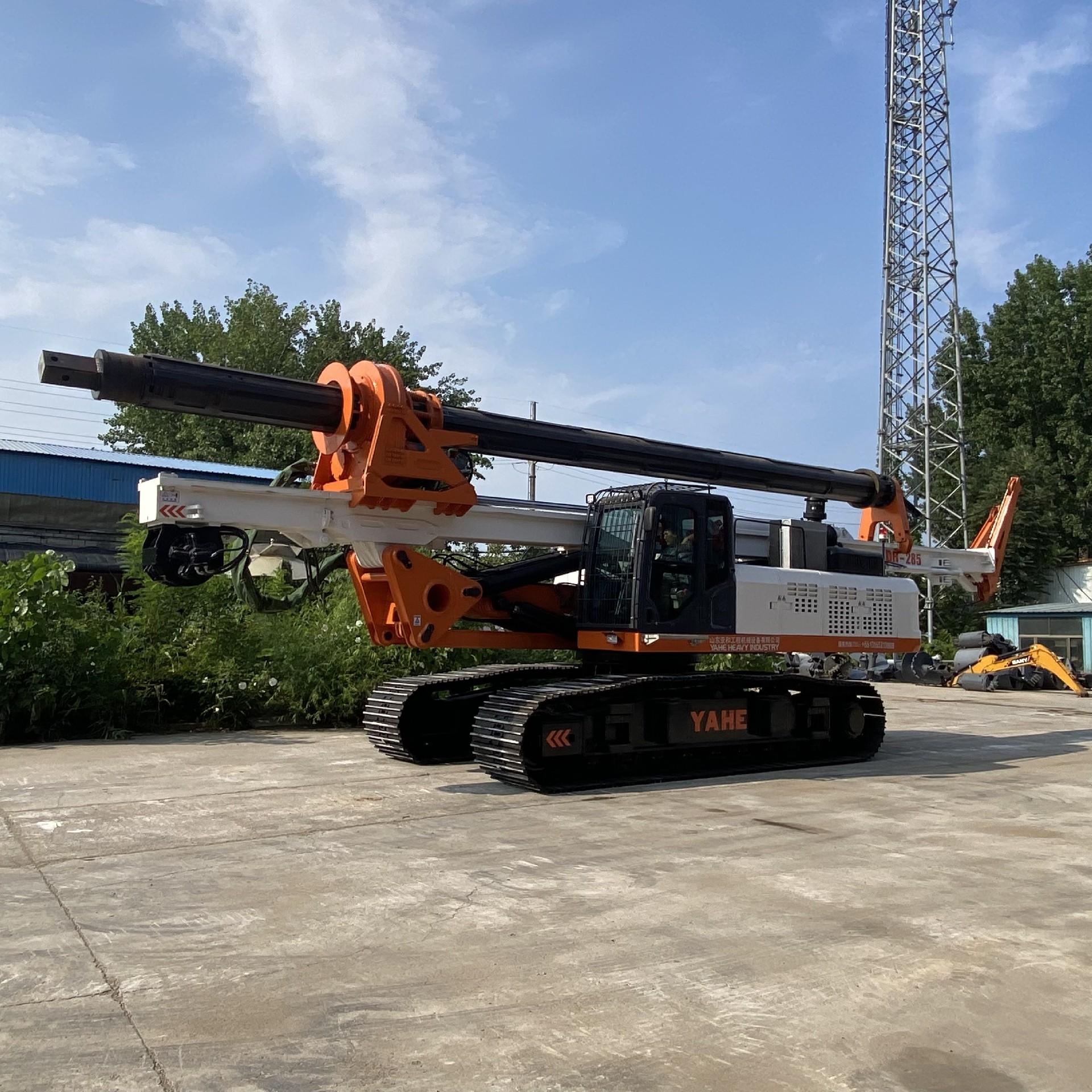 This rotary drilling rig is equipped with a machine lock drill rod. The maximum drilling depth can reach 68m, the drilling diameter is 600-2400mm, the maximum torque of the power head is 285KN.m. The high-power turbocharged medium-air cooling engine is equipped, and the power system is more efficient 3. Higher transmission efficiency.The H-type retractable crawler chassis can overcome various complicated construction road conditions. The chassis telescopic function can improve the center of gravity of the body of the pile driver construction operation and increase its stability. The rig is equipped with a new generation of humanized cockpit, a new human-machine interaction interface, a new control system, 360° full-angle monitoring, and can be controlled by wireless remote control to achieve driving steering, chassis expansion, body rotation, mast lifting and other functions.